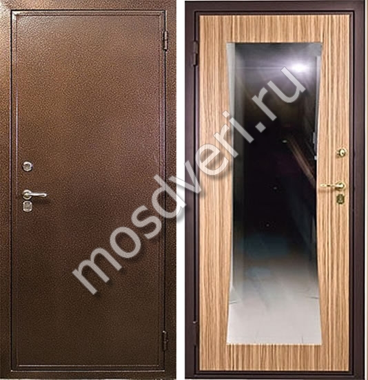 Дверь входная с порошковым напылением и зеркалом внутри — совмещает эстетичность и максимальную защиту.