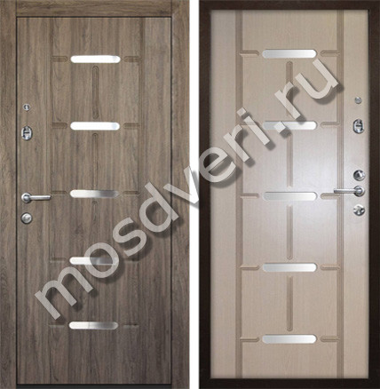 Входная дверь со скрытыми петлями с горизонтальными вставками — объединяет эстетичность и максимальную защиту.
